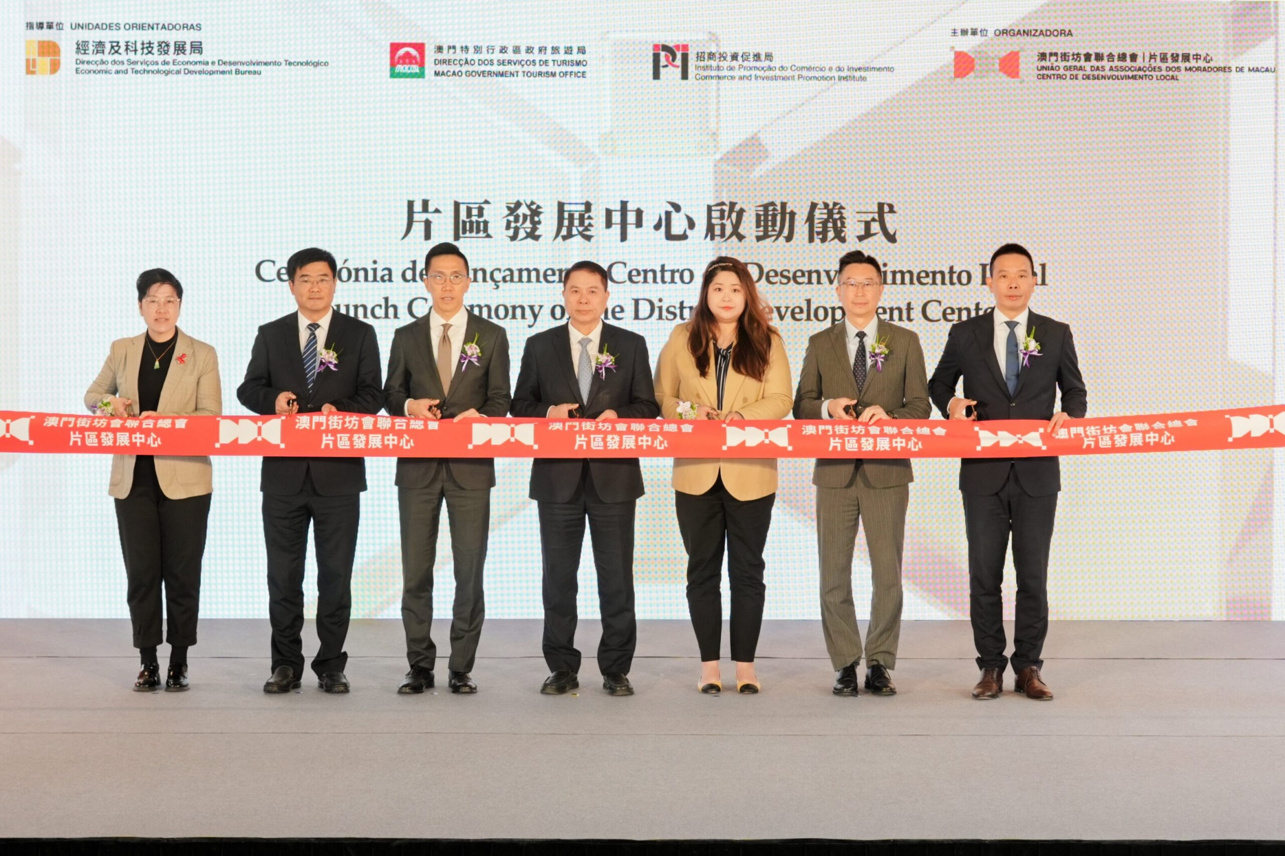 經濟及科技發展局局長邱潤華在致辭中表示,片區發展中心的成立是政府推動社區經濟的重要舉措,通過政府、休企與民間力量的整合,將為片區發展注入新動力。在多方協作的新模式下,政府負責審批方案、協調資源、監管成效;休企按承諾投入資源並按需要執行部分活化項目;民間則通過片區發展中心凝聚各界力量、策劃組織各類活動,共同推動片區發展。澳門街坊會聯合總會理事長陳家良表示,片區發展中心將充分發揮平台作用,促進民間力量的緊密合作,協調各方參與,集思廣益共同打造更具特色的片區商圈,實現片區可持續發展。