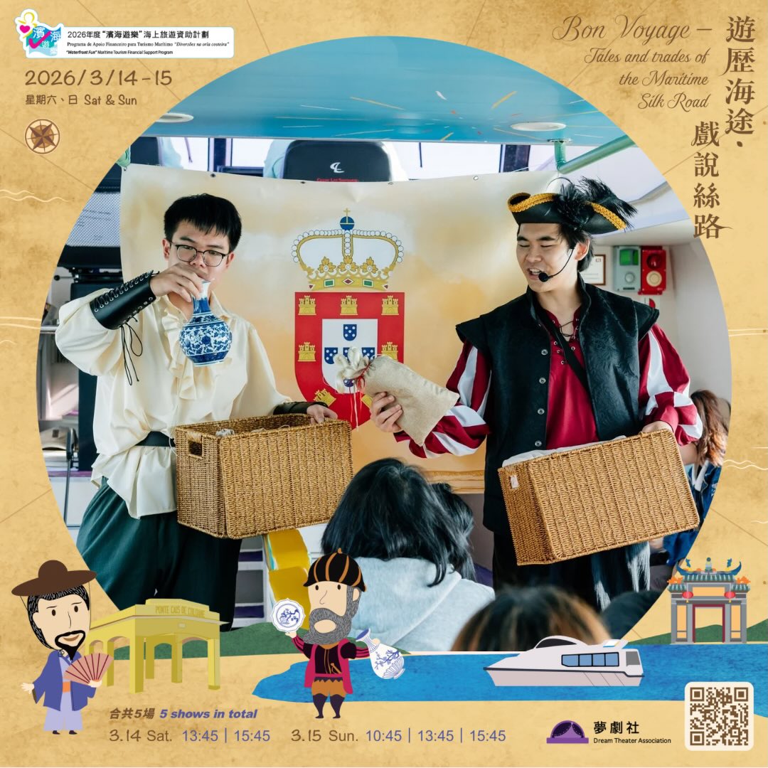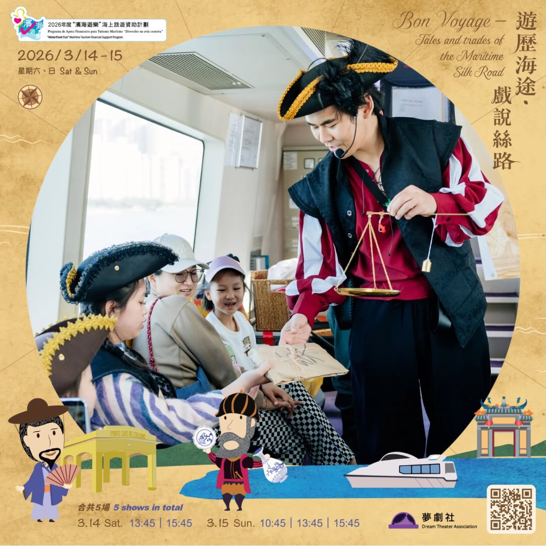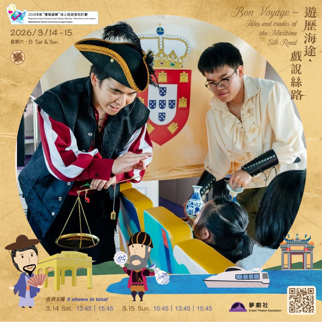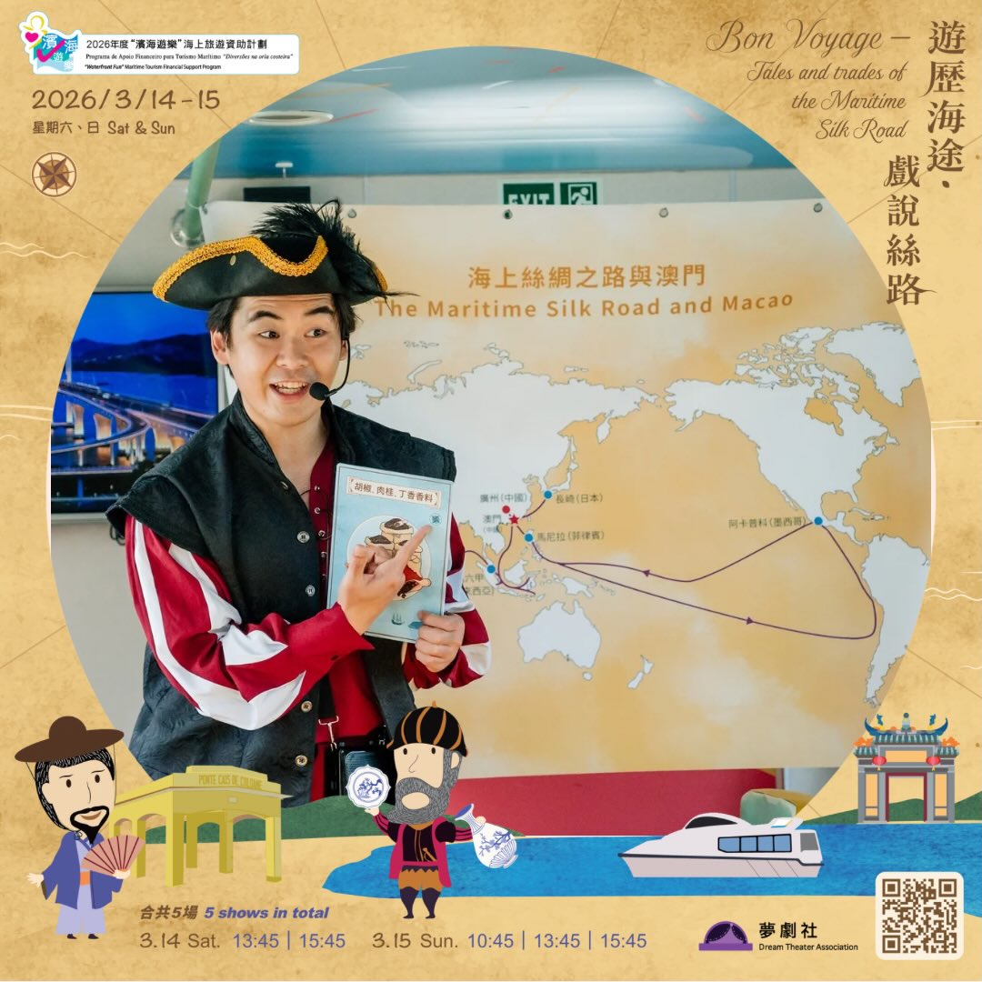 以互動劇場的形式為觀眾呈獻一場澳門海上絲綢之路的故事,觀眾將化身為大航海時代的人物角色,親身參與趣味互動,遊歴古今貿易航線。